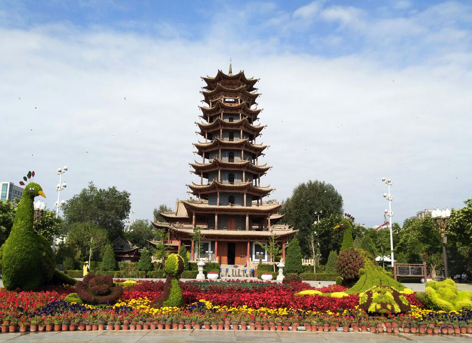 張掖木塔寺(釘一本も使われていない高さ33mを誇る木塔)(外観のみ)