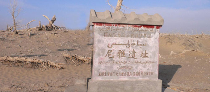 朝、ニヤ遺跡へ移動する(距離55km=約5時間)。 到着後、文物管理員と一緒に砂に埋まれたニヤ仏寺遺跡を見学します。