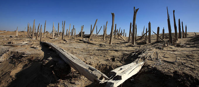朝出発、4WD砂漠専用車にてコルラ(庫爾勒)を経由して輪台へ移動します。途中、ボストン湖を見学します。